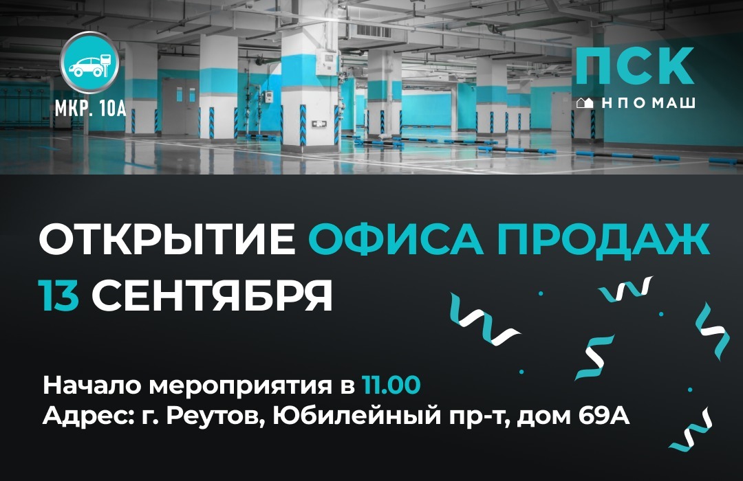 В эту субботу, 13 сентября, состоится праздничное открытие отдела продаж паркинга на Юбилейном!